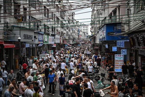 Recruiters from clothing factories and job-seeking labourers on a street in an urban village in Guangzhou, in southern China's Guangdong province, on April 16.JADE GAO/AFP/Getty Images