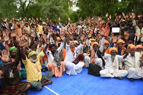 Indian members from the Vaadi community participate in a protest in support of Shantadevi Nath, who was killed by a mob that believed she was intent on abducting children, on July 2, 2018.SAM PANTHAKY/Getty Images