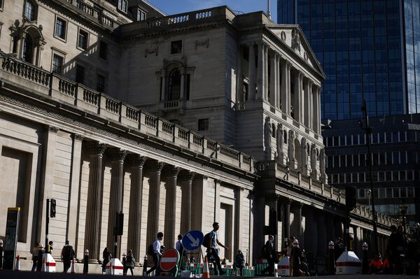 People walk outside the Bank of England, in London, on May 11.HENRY NICHOLLS/Reuters