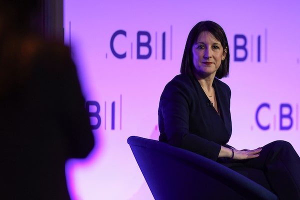 Britain's Chancellor of the Exchequer Rachel Reeves speaks during the Confederation of British Industry annual conference, in London, on Nov. 25.ADRIAN DENNIS/AFP/Getty Images