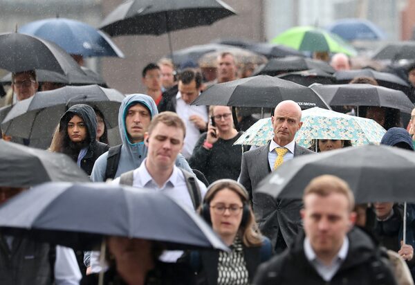 Workers cross London Bridge during the morning rush-hour, in London, on May 21.Toby Melville/Reuters