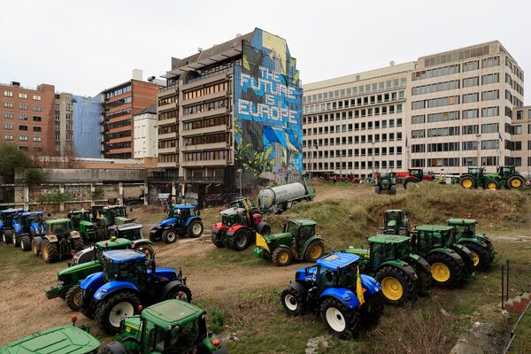 Farmers park their tractors near the European Council building in Brussels during a demonstration on March 26.Geert Vanden Wijngaert/The Associated Press