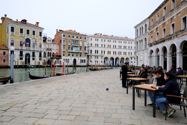 Patrons sit on a patio in Venice, Italy, on April 26, 2021.MANUEL SILVESTRI/Reuters