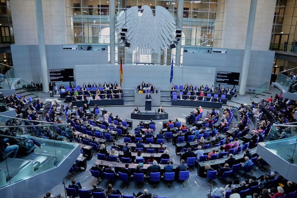 German opposition leader and Christian Democratic Union party chairman Friedrich Merz speaks in the Bundestag, in Berlin, on March 18.Ebrahim Noroozi/The Associated Press