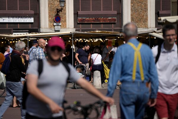 People shop at a market in Versailles, France, on July 3, 2022.Christophe Ena/The Associated Press