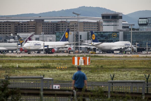 A spectator watches the spare air traffic and parked Lufthansa airplanes at Frankfurt Airport on June 15, 2020 in Germany.Thomas Lohnes/Getty Images