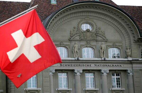 A Swiss flag in front of the Swiss National Bank, in Bern, Switzerland, on May 2, 2019.Denis Balibouse/Reuters
