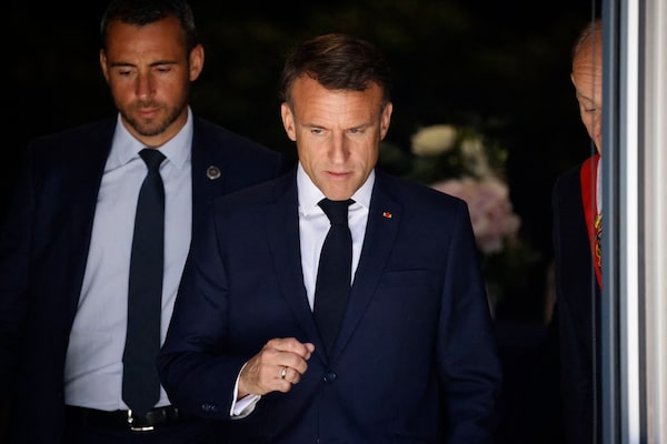 French President Emmanuel Macron leaves a polling station in Le Touquet, northern France, on June 9.LUDOVIC MARIN/Getty Images