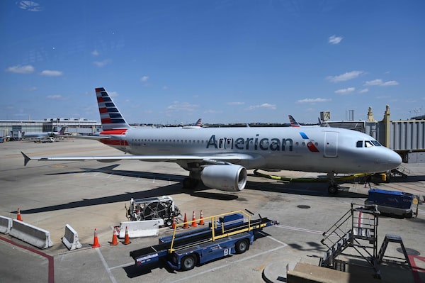 An American Airlines jet sits parked at a gate at Washington National Airport in Arlington, Va., on April 11, 2020.DANIEL SLIM/AFP/Getty Images