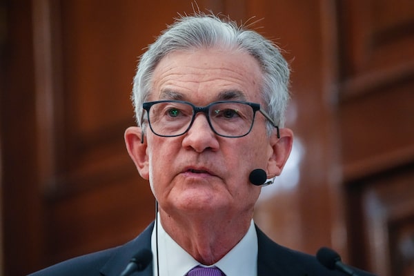 Federal Reserve Chairman Jerome Powell speaks during a meeting at Spain's Central Bank, in Madrid, on June 29.Manu Fernandez/The Associated Press