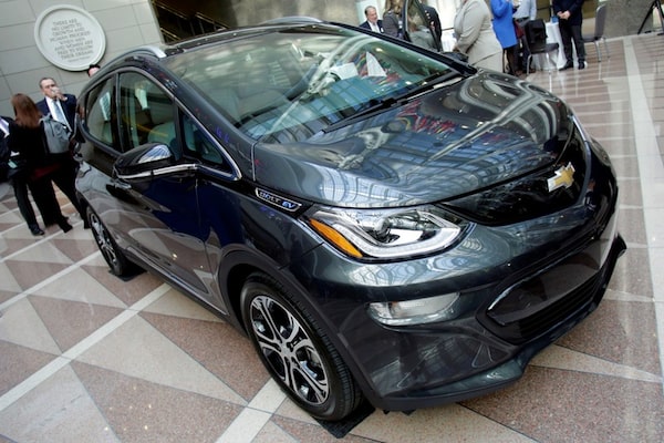 The 2017 Chevrolet Bolt EV sits on display during an Economic Club event in Washington on Feb. 28, 2017.Yuri Gripas/Reuters