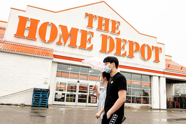 People walk through a Home Depot parking lot in Whitby, Ont., on May 28, 2020.Christopher Katsarov/The Globe and Mail