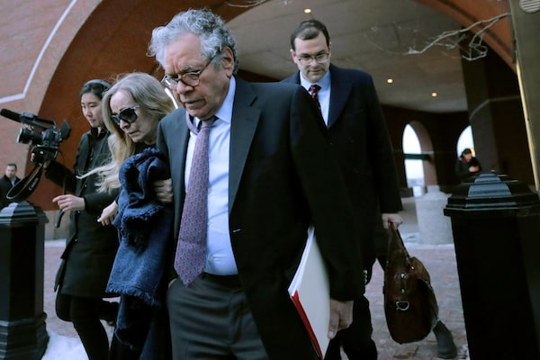 Insys Therapeutics founder John Kapoor, front, departs federal court on Jan. 23, 2020, in Boston, after he was sentenced to 5½ years in prison for orchestrating a bribery and kickback scheme prosecutors said helped fuel the opioid crisis.Charles Krupa/The Associated Press