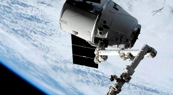 A NASA Television image shows a SpaceX shipment preparing to arrive at the International Space Station following a weekend launch, on May 6, 2019.The Canadian Press