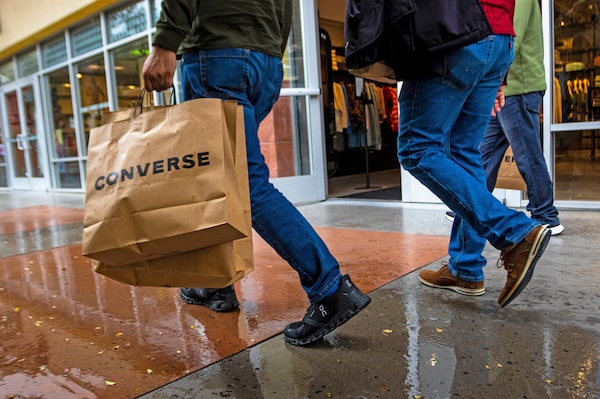 A shopper carries bags in Las Vegas, on March 14.Ty O'Neil/The Associated Press