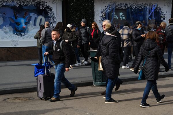 People walk along a busy shopping street in New York, on Dec. 10.Spencer Platt/Getty Images