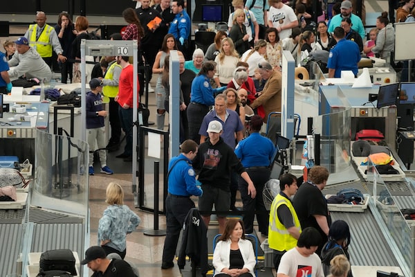 Travellers well up at the south security checkpoint as TSA agents work in Denver International Airport, on May 26.David Zalubowski/The Associated Press