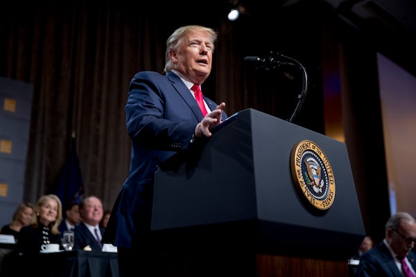 U.S. President Donald Trump speaks at the Economic Club of New York at the New York Hilton Midtown in New York on Nov. 12, 2019.Andrew Harnik/The Associated Press