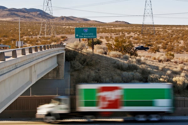 Brightline West, whose sister company already operates a fast train between Miami and Orlando in Florida, aims to lay 351 kilometres of new track between Las Vegas and another new facility in Rancho Cucamonga, Calif. Almost the full distance is to be built in the median of Interstate 15, with a station stop in San Bernardino County’s Victorville area.