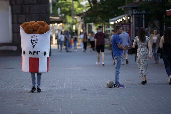 A person dressed in a KFC marketing costume walks through Kyiv on June 06.Chris Furlong/Getty Images