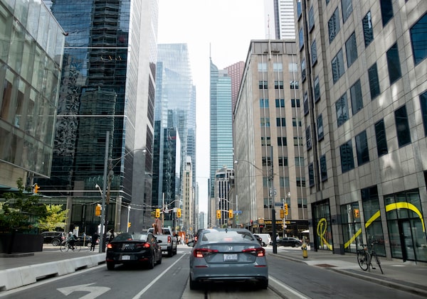 Office buildings in Toronto’s Financial District are photographed on along Adelaide St. West on Sept 28, 2023.Fred Lum/The Globe and Mail