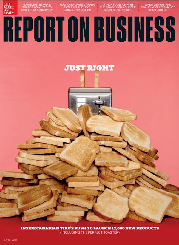 March: In this edition, we go inside the lab where Canadian Tire is developing thousands of new gadgets. Also: we focus on Canada’s financial sector and the road it’s taking to net zero. Plus: we talk with the CEO of Live Nation, Arthur Fogel, on how a kid from Ottawa became the king of the global concert business.