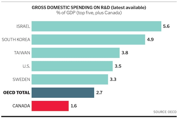 Globerman notes that Canada’s poor and sliding performance when it comes to R&D and innovation shows that industrial subsidies don’t really deliver the goods. “What the government has been doing hasn’t worked,” he says. “The recent budget is doubling down on the old history of the government picking sectors and companies to receive these subsidies and essentially making the bets that, I believe, private investors and venture capitalists should be making.” (Other analysis, such as a 2016 study by the U.S. National Bureau of Economic Research on R&D tax credits in the U.K., has found them to be effective at spurring innovation.)