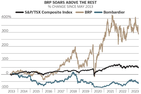 But there’s been quite a reversal of fortunes since then. Bombardier has sold off much of its operations, and its 2022 revenue of $11.1 billion was less than half of what it was in 2004, the year after it sold BRP. By contrast, BRP’s revenue surged by 31% for its 2023 fiscal year ended this past Jan. 31 and cracked $10 billion—almost as much as its old parent, and 4.6 times greater than its first year.