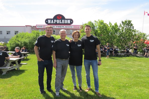 Chris, Wolfgang, Ingrid and Stephen Schroeter celebrate the company's 40th anniversary at the Napoleon Manufacturing site in Oro-Medonte, Ont., on June 15, 2016.Supplied