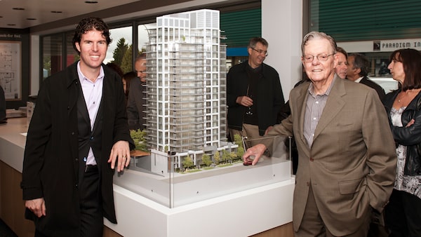 Beedie and his father at the company's Vancouver office in 2012. After earning his MBA at UBC and marrying wife Cindy in 1992, Beedie joined Keith and his older brother Colin at the family firm.Michael Connolly/Supplied