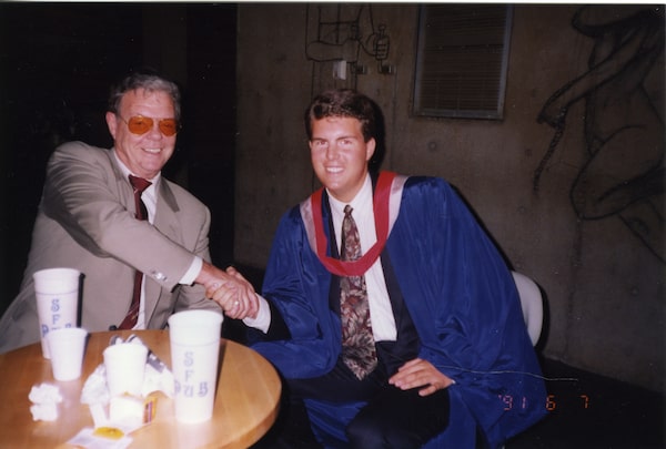 Ryan Beedie celebrates his 1991 graduation from Simon Fraser University with his father Keith. In 2011, SFU's business school was renamed the Beedie School of Business in recognition of a sizeable donation from the father and son.Supplied