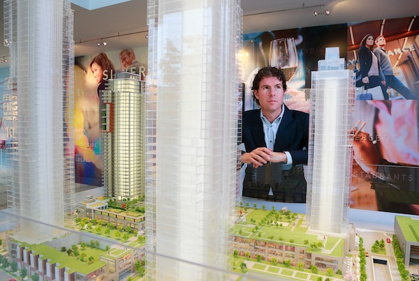 Beedie looks over the model of the Station Square project in October, 2012. By 2009, Beedie had overseen a five-fold expansion in the company’s net asset value, to more than $500 million since he joined.Jeff Vinnick/The Globe and Mail