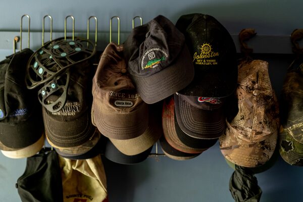Mr. Dewey's collection of baseball caps, hanging by the front door of his house.JOHNNY C.Y. LAM/The Globe and Mail