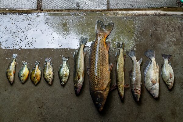 A selection of the fish commonly found in the waters around Prince Edward County. From left: Yellow perch, pumpkin sunfish, blue gill sunfish, rock bass, crappie, pickerel, common carp, northern pike, white sucker, sheep head and white perch.JOHNNY C.Y. LAM/The Globe and Mail