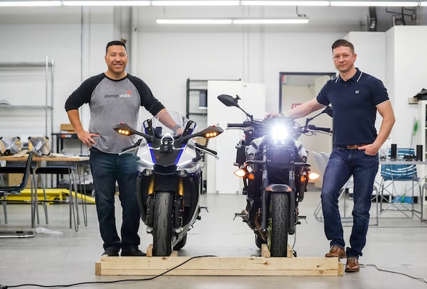 After Mr. Giraud turned his attention to motorcycle safety, he connected with Dom Kwong, a veteran Vancouver hardware engineer. They co-founded Damon Motors Inc. – billed as Damon X Labs. The company is developing technology that combines hardware and software to make motorcycling safer.