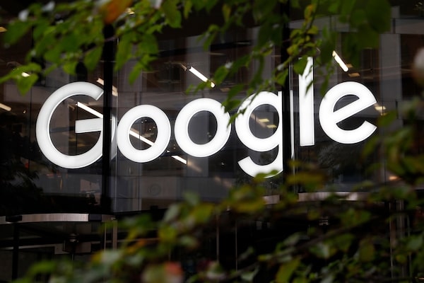 A sign at the Google offices in Granary Square, in London, on Nov. 1, 2018.Alastair Grant/The Associated Press