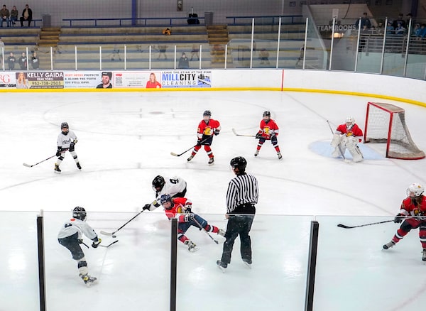 A 10-and-under youth hockey game in Minneapolis in 2024. Livebarn livestreams amateur and youth sports games from across North America.Abbie Parr/The Associated Press
