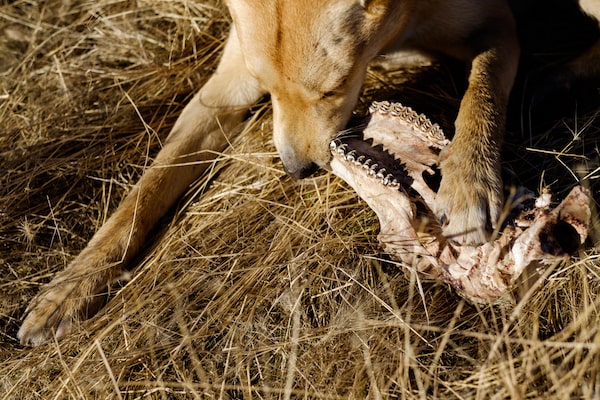 A dog in Old Crow chews on a caribou skull.Weronika Murray/The Globe and Mail