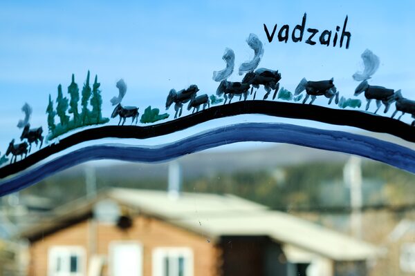 At the John Tizya Centre in Old Crow, scenes of a caribou migration are painted on the windows. "Vadzaih" means caribou in the Gwich'in language.Weronika Murray/The Globe and Mail