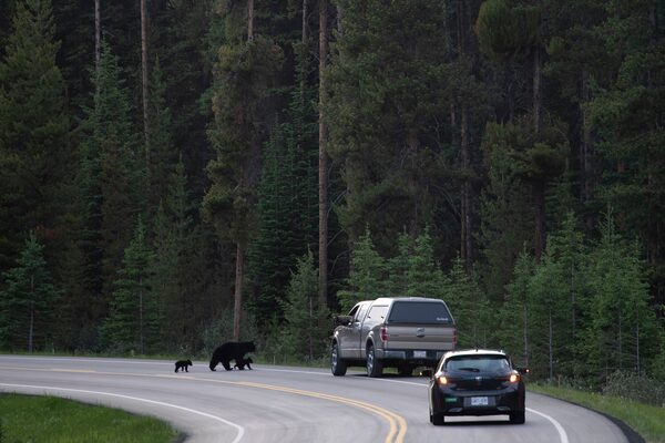 Black bears walk across the road near Lake Louise, Alta., in June, 2020.JONATHAN HAYWARD/The Canadian Press