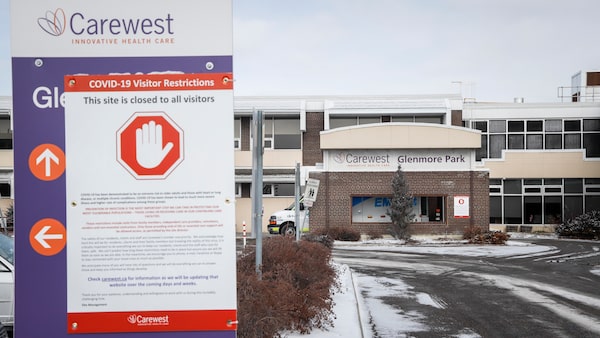 The Carewest Glenmore Park senior's home in Calgary, Alta., is seen on April 1, 2020, amid a worldwide COVID-19 pandemic. A staff member from Carewest Glenmore Park has tested positive for COVID-19.Jeff McIntosh/The Canadian Press