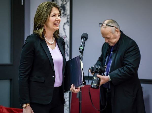 Alberta Premier Danielle Smith, arrives to make an announcement at the Chinese Cultural Centre in Calgary on April 14.Jeff McIntosh/The Canadian Press