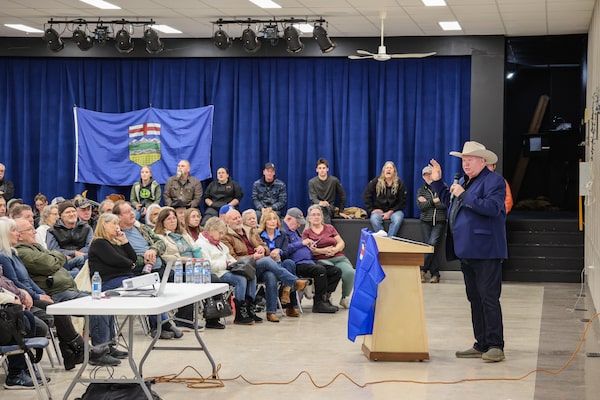 Listing grievances directed at Ottawa and standing at a lectern draped in an Alberta flag, Mr. Sylvestre is speaking on this cold January night at a community hall in Eckville, about two hours northwest of Calgary. At least 400 people have come to listen. Even more are just there to sign the petition trying to force Alberta’s first-ever separation referendum.
