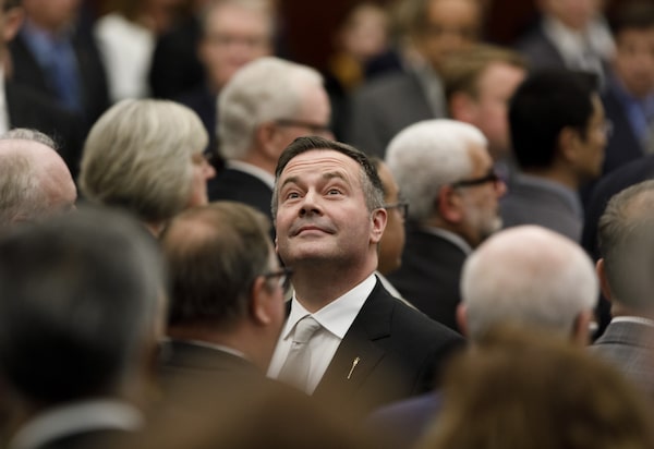 Alberta Premier Jason Kenney, seen here looking to the gallery after the speech from the throne was delivered, acknowledged that the federal government will almost certainly respond to the end of the province’s tax by imposing a federal carbon price.JASON FRANSON/The Canadian Press