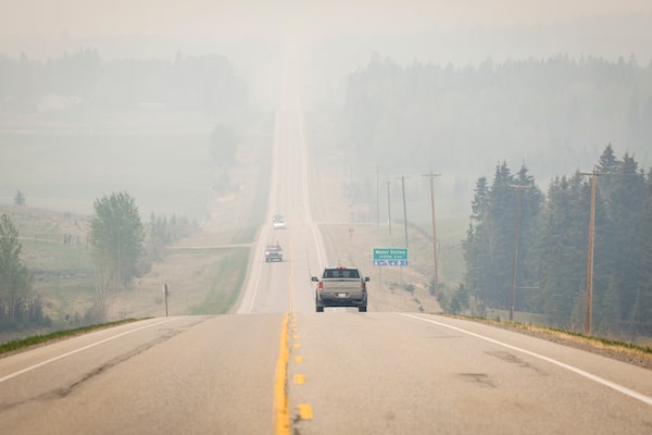 Thick smoke from wildfires blankets the landscape near Water Valley, Alta., 100 kilometres northwest of Calgary, on May 16.Jeff McIntosh/The Canadian Press