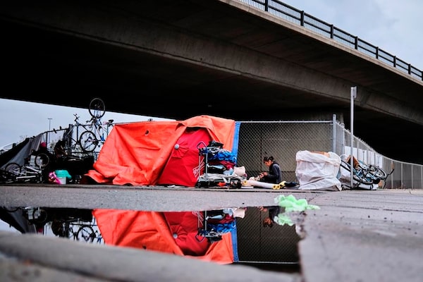 A homeless camp is shown under an overpass in Calgary, on May 20, 2020.The Canadian Press