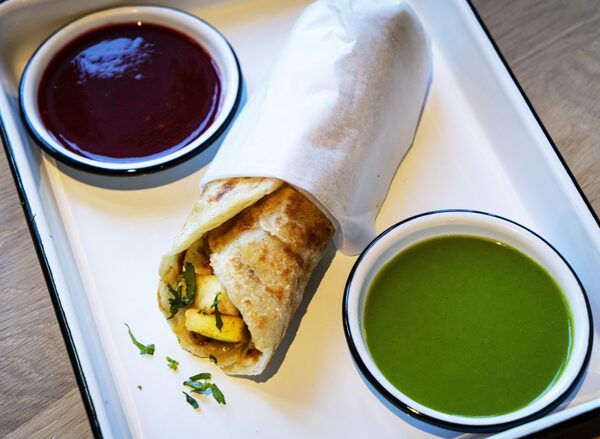 Vegetable kati roll from Saffron Street at First Street Market.Todd Korol/The Globe and Mail