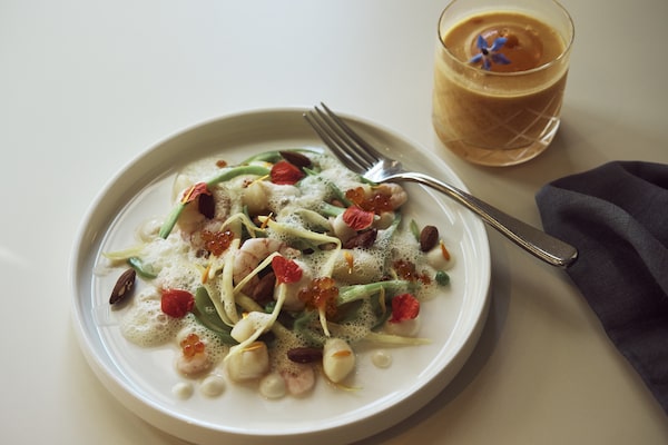 Bay scallops and shrimp with a creamsicle cocktail.Todd Korol/The Globe and Mail