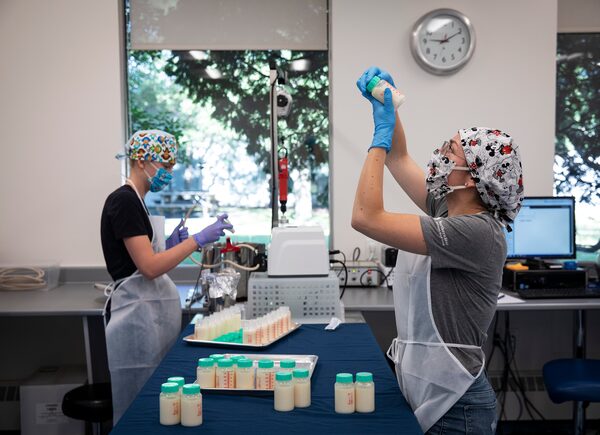 Staff at the NorthernStar Mothers Milk Bank which supplies breast milk to almost three dozen Canadian hospitals work with breast milk in Calgary, Alberta, August 6, 2020.Todd Korol/The Globe and Mail
