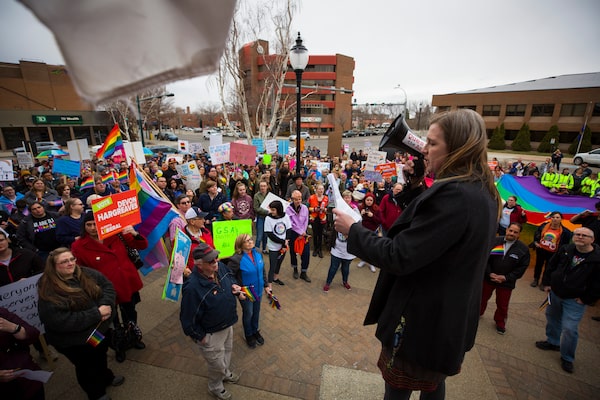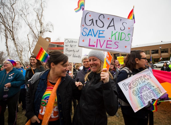 In Lethbridge, a rally for gay-straight alliances protests against Jason Kenney and the United Conservatives.